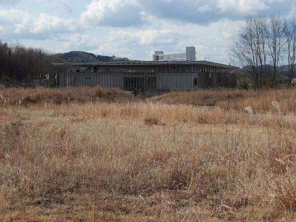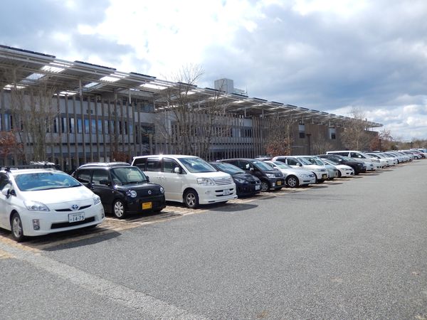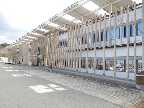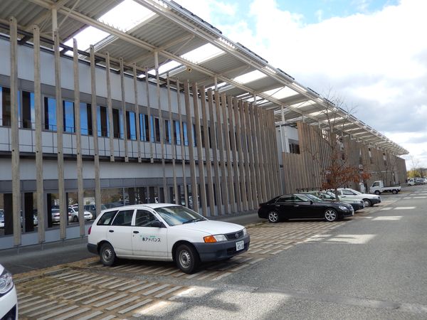 奥行き感のあるデザインが特徴の県民局総合庁舎。