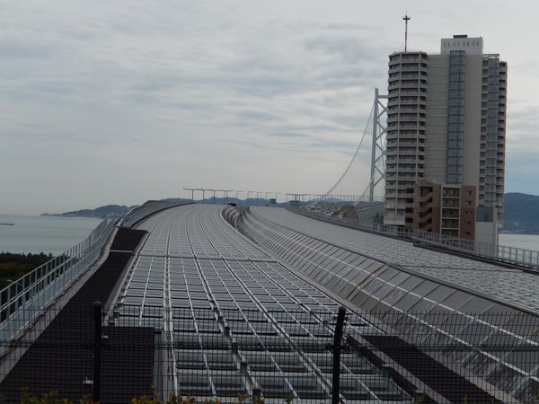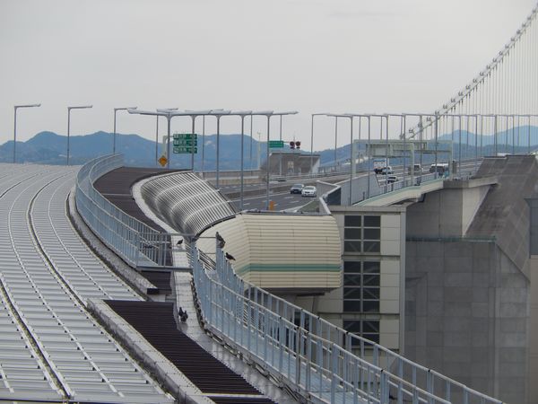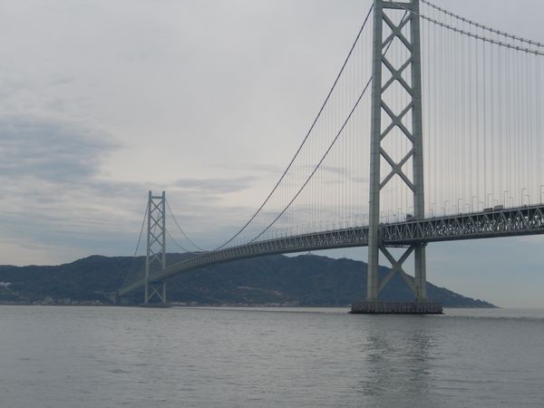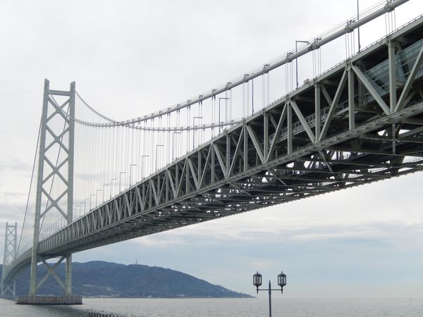 明石海峡を横断する世界最長のつり橋。主塔は298mの高さがある。