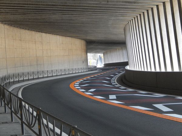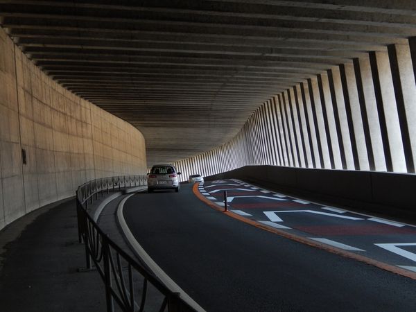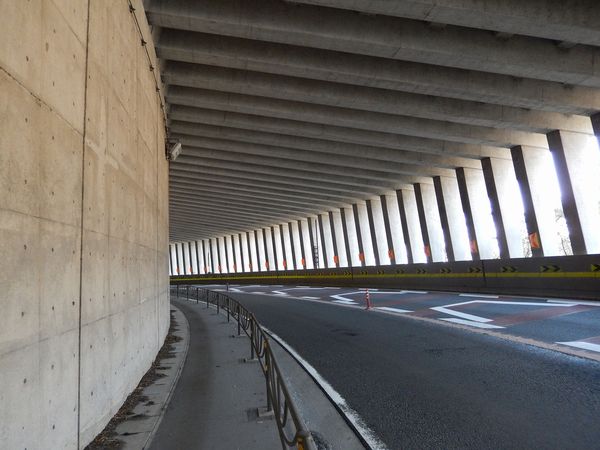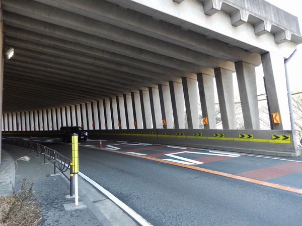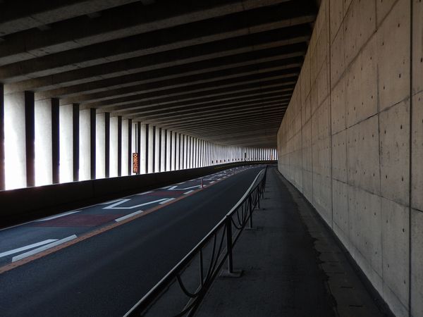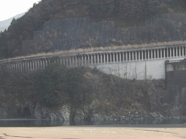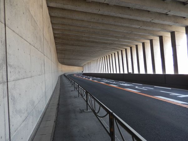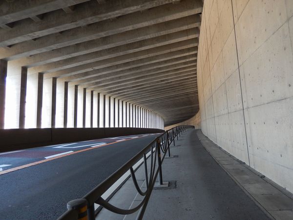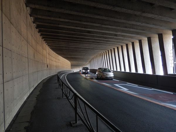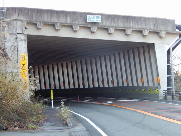 国道52号沿いの洞門(ロックシェッド)。全長約400m。洞門内は数回のカーブと、上下のアップダウンがある。