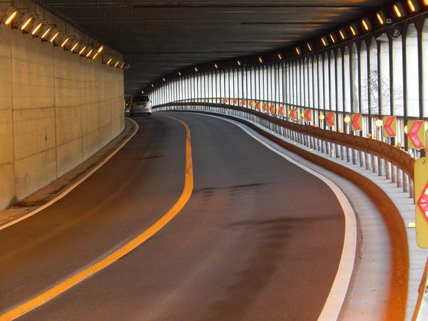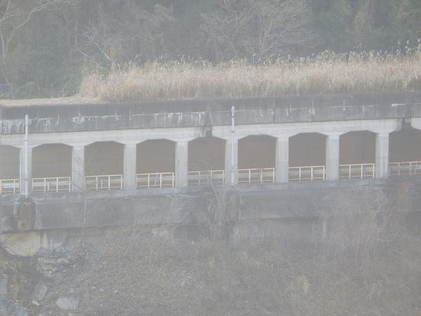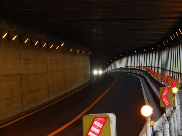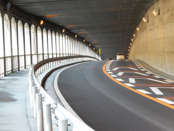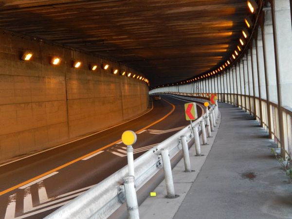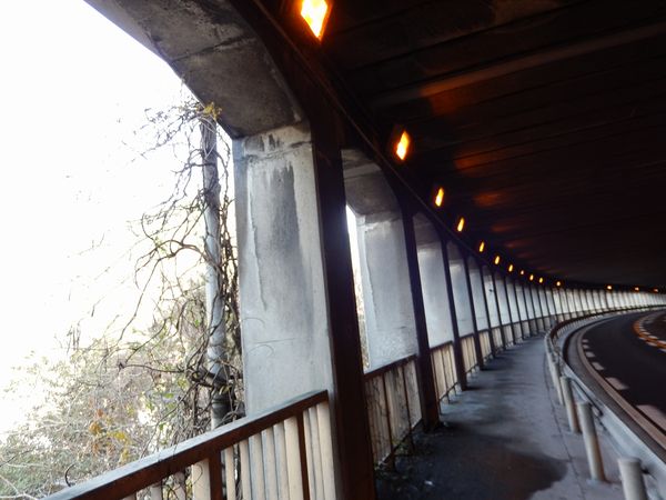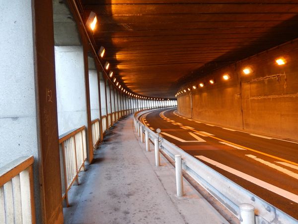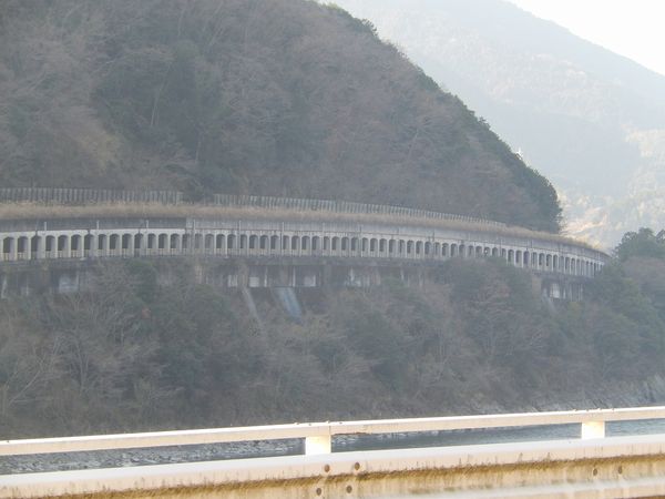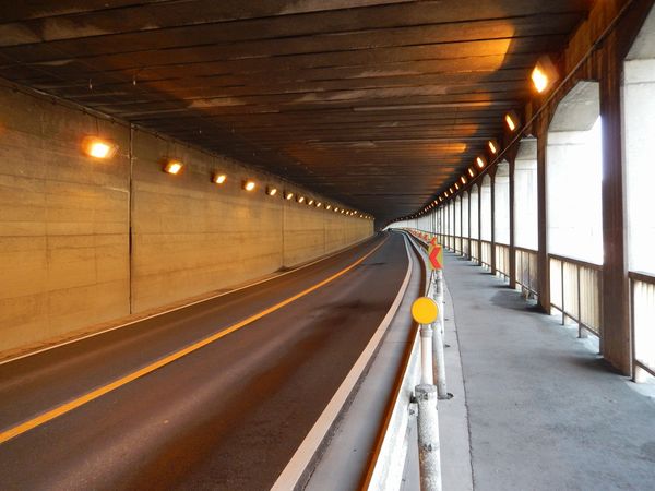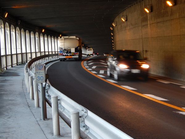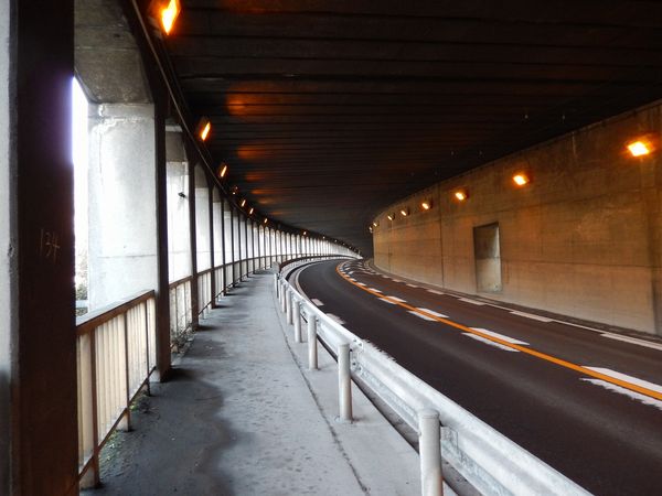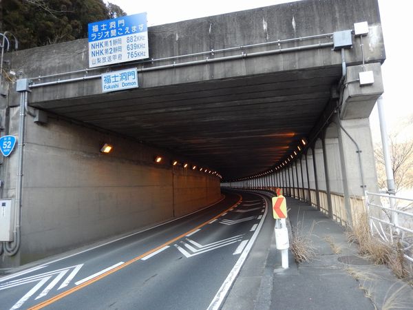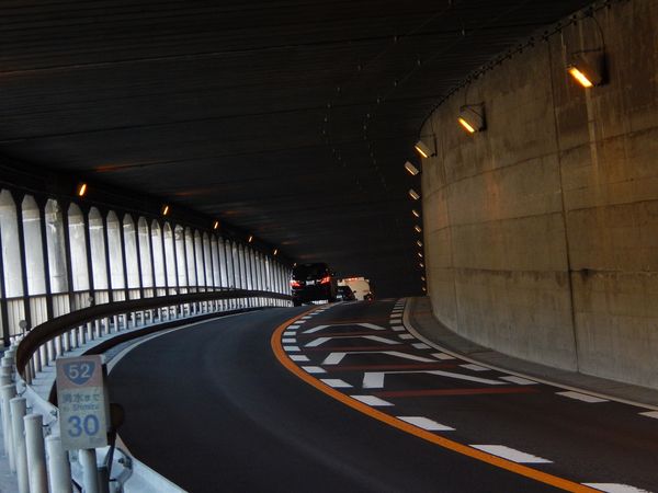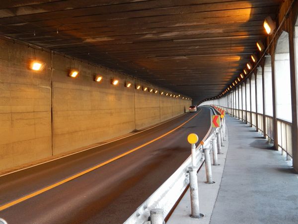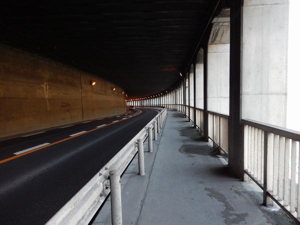 国道52号沿いの洞門(ロックシェッド)。全長約600m。